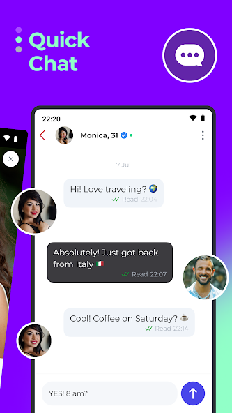 Im Gegensatz zu vielen anderen Apps, die Sie möglicherweise zuvor verwendet haben, bietet Catchyy Ihnen viel mehr Chancen, Ihren perfekten Partner kostenlos zu treffen. Sie können kostenlose Reaktionen senden, auf die persönlichen Informationen anderer Benutzer zugreifen und sogar einen Chat mit denen beginnen, die Ihnen mit einzigartigen, vorgeschriebenen Grüßen gefallen.